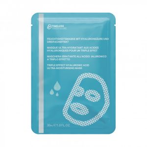 Στόχος μας είναι να διατηρήσουμε την υγρασία στο δέρμα και να εμποδίσουμε την αφυδάτωση. Μια καλή επένδυση είναι το ενισχυμένο με υαλουρονικό οξύ και βιταμίνη Β5, σέρουμ προσώπου Medik8 Hydr8 B5 Intense που βοηθά στην αναπλήρωση του δικού μας υαλουρονικού οξέος. Εναλλακτική επιλογή είναι η ενυδατική κρέμα ημέρας Medik8 Advanced Day Total SPF 30 με υαλουρονικό οξύ, βιταμίνη C, θεοβρωμίνη (από το κακάο) που έχει ενυδατικές, λευκαντικές και αντιοξειδωτικές ιδιότητες. Στο μπουντουάρ σας αξίζει να προσθέσετε αρκετές βραβευμένες Timeless Truth μάσκες, όπως των χεριών, του λαιμού και ντεκολτέ και φυσικά του προσώπου. Ξεχωρίζουμε τις σούπερ ενυδατικές Black mask hydra intense TT mask και την Triple HA TT mask (φωτό).