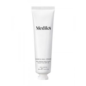 Η φόρμουλα Medik8 hand & nail cream προσφέρει αντιοξειδωτική δράση και αντιηλιακή προστασία με το εκχύλισμα λευκού τσαγιού, ενυδατικούς παράγοντες, όπως βούτυρο κακάο και δείκτη προστασίας SPF25.