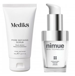 Ακόμα, ένα ήπιο, ενζυμικό πίλινγκ για σκραμπ είναι το Nimue exfoliating enzyme που περιέχει ένζυμα παπάγιας, ανανά και εκχύλισμα πορτοκαλιού. Αφού απλώσετε σε καθαρό πρόσωπο μια μικρή ποσότητα, την αφήνετε για 1-2' να δράσει και κάνετε μασάζ με βρεγμένα δάχτυλα για 3-5'. Αφήνετε για ακόμα 2' και πλένετε το δέρμα σας.